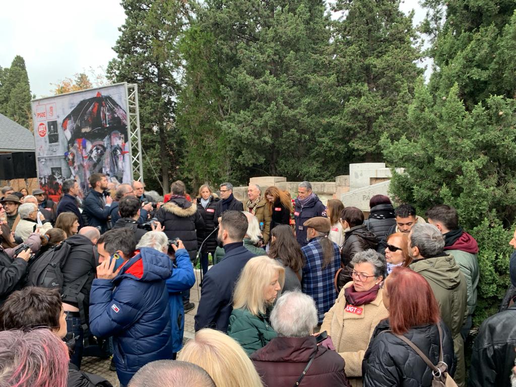 En la conmemoración del 98 aniversario de la muerte de Pablo Iglesias en el Cementerio civil de Madrid con las intervenciones de Félix Bolaños. Ministro de Presidencia, Justicia y Relaciones con las Cortes y patrono de la Fundación Pablo Iglesias, Sara Bonmati. Secretaria de Justicia y Memoria Democrática del PSOE-Madrid, Marina Prieto. Secretaria general UGT-Madrid y Pepe Álvarez. Secretario general de UGT.