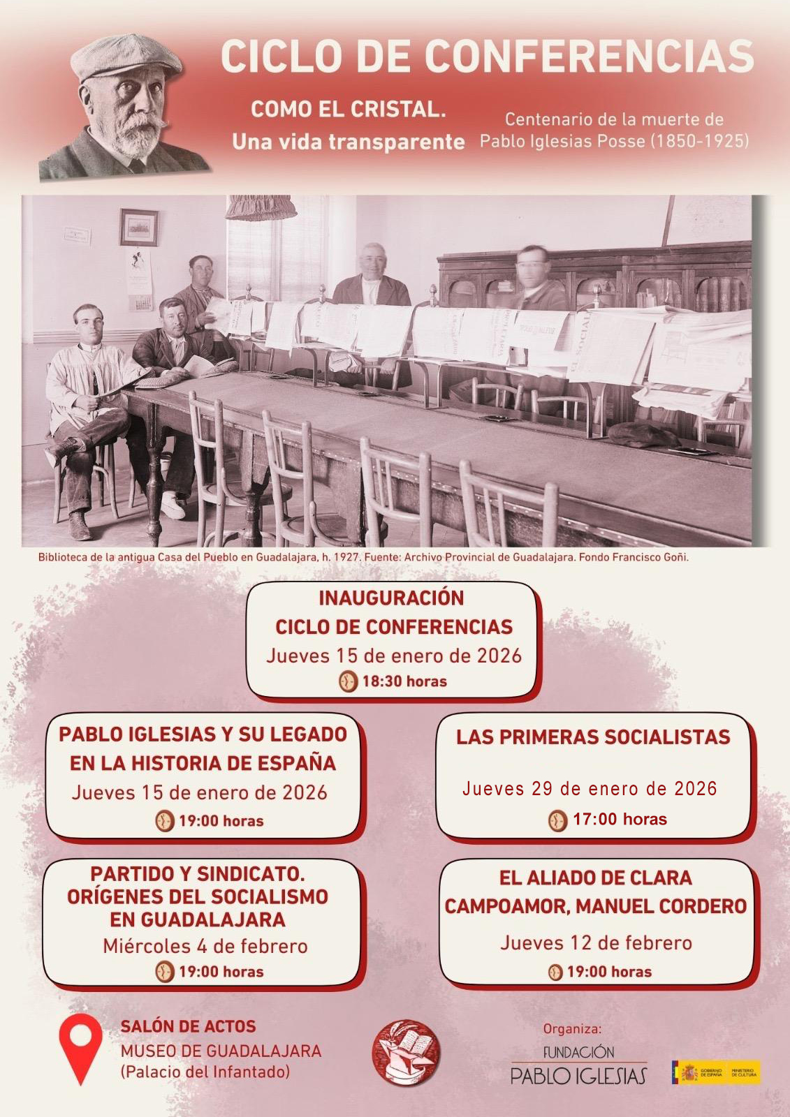 El próximo jueves, 15 de enero, a las 18:30 h, en el salón de actos del Museo de Guadalajara tendrá lugar la inauguración del ciclo de conferencias “Como el cristal. … Read More