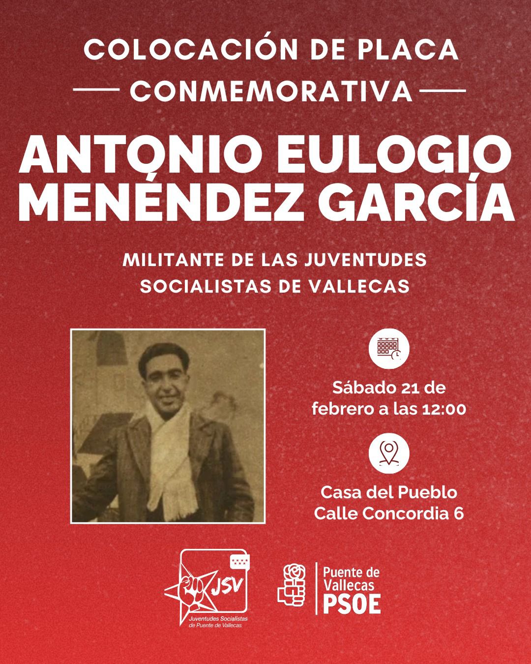 Colocación de la placa en honor de Antonio Eulogio Menéndez García (Puente de Vallecas-Madrid)