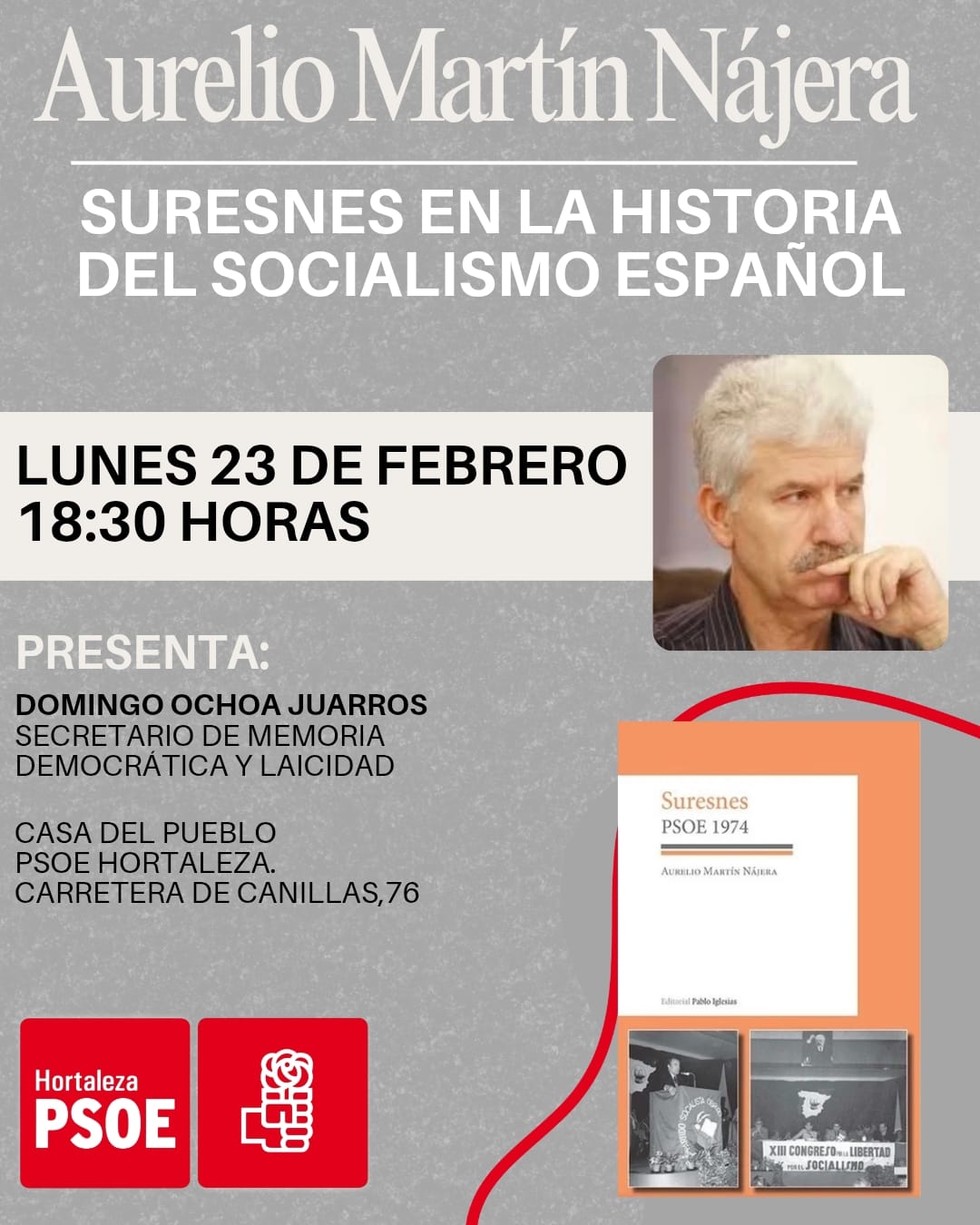 El 23 de febrero de 2026, Aurelio Martín Nájera, director emérito del Archivo y la Biblioteca de la Fundación Pablo Iglesias presentó su libro Suresnes. PSOE 1974, en la sede … Read More
