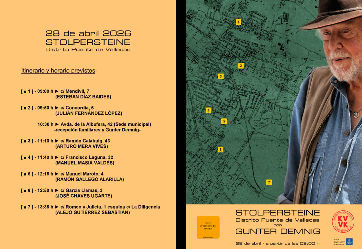 Hoy, 28 de abril de 2026, el distrito de Puente de Vallecas rinde homenaje a las víctimas del nazismo con la colocación de siete «Stolpersteine». Bajo el lema «Una piedra, … Read More