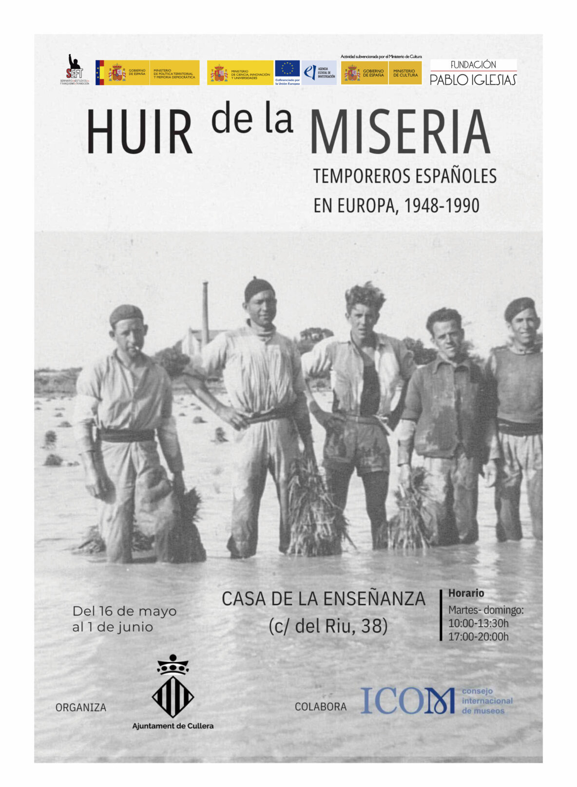 La Exposición Huir de la miseria. Temporeros españoles en Europa, 1948-1990 se presenta en la Casa de la Enseñanza (C/ del Riu, 38 de Cullera), del 16 de mayo al … Read More