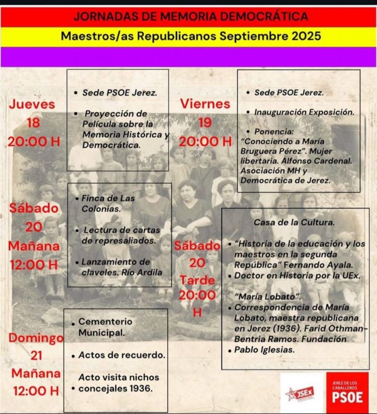 Jornadas de Memoria Democrática. Maestros/as republicanos/as. Jerez de los Caballeros (Badajoz)