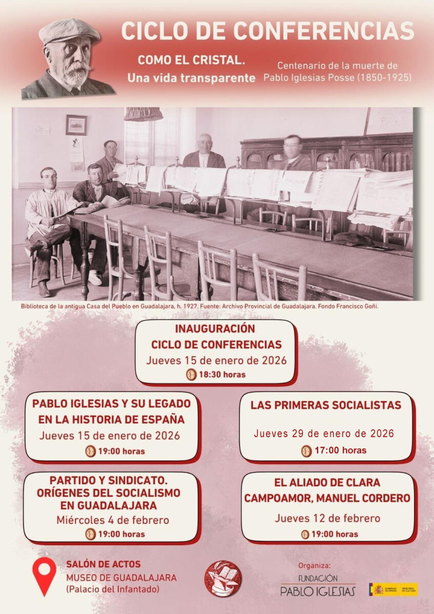 Evento relacionado: Conferencia: “Pablo Iglesias y su legado en la historia de España”. Ciclo de conferencias: “Como el cristal. Una vida transparente”