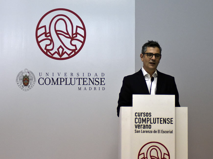 Félix Bolaños, ministro de la Presidencia, Relaciones con las Cortes y Memoria Democrática, clausura el Curso de Verano “Jóvenes, Política y Políticas: transformando el presente-construyendo el futuro”.