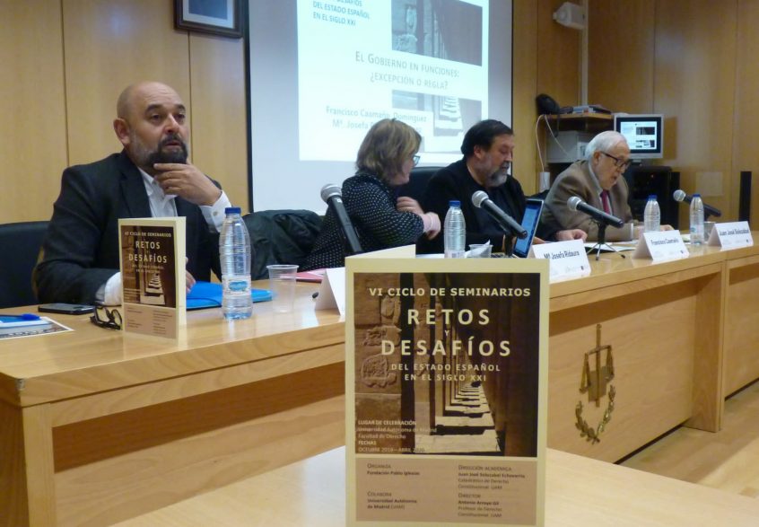 Francisco Caamaño, Catedrático de Derecho Constitucional de la Universidad de A Coruña y M. Josefa Ridaura, Catedrática de Derecho Constitucional de la Universidad de Valencia, abordan el tema El Gobierno en funciones en la sesión del mes de noviembre del Seminario Retos y desafíos del estado español en el siglo XXI.