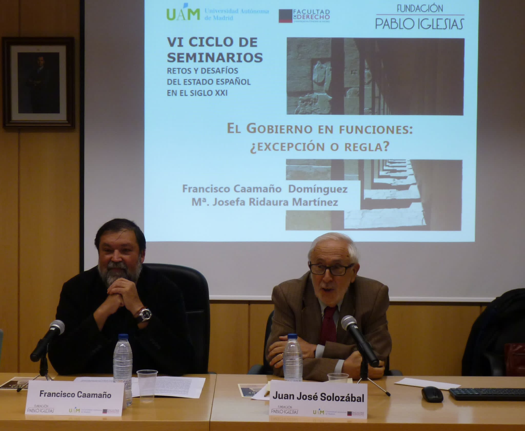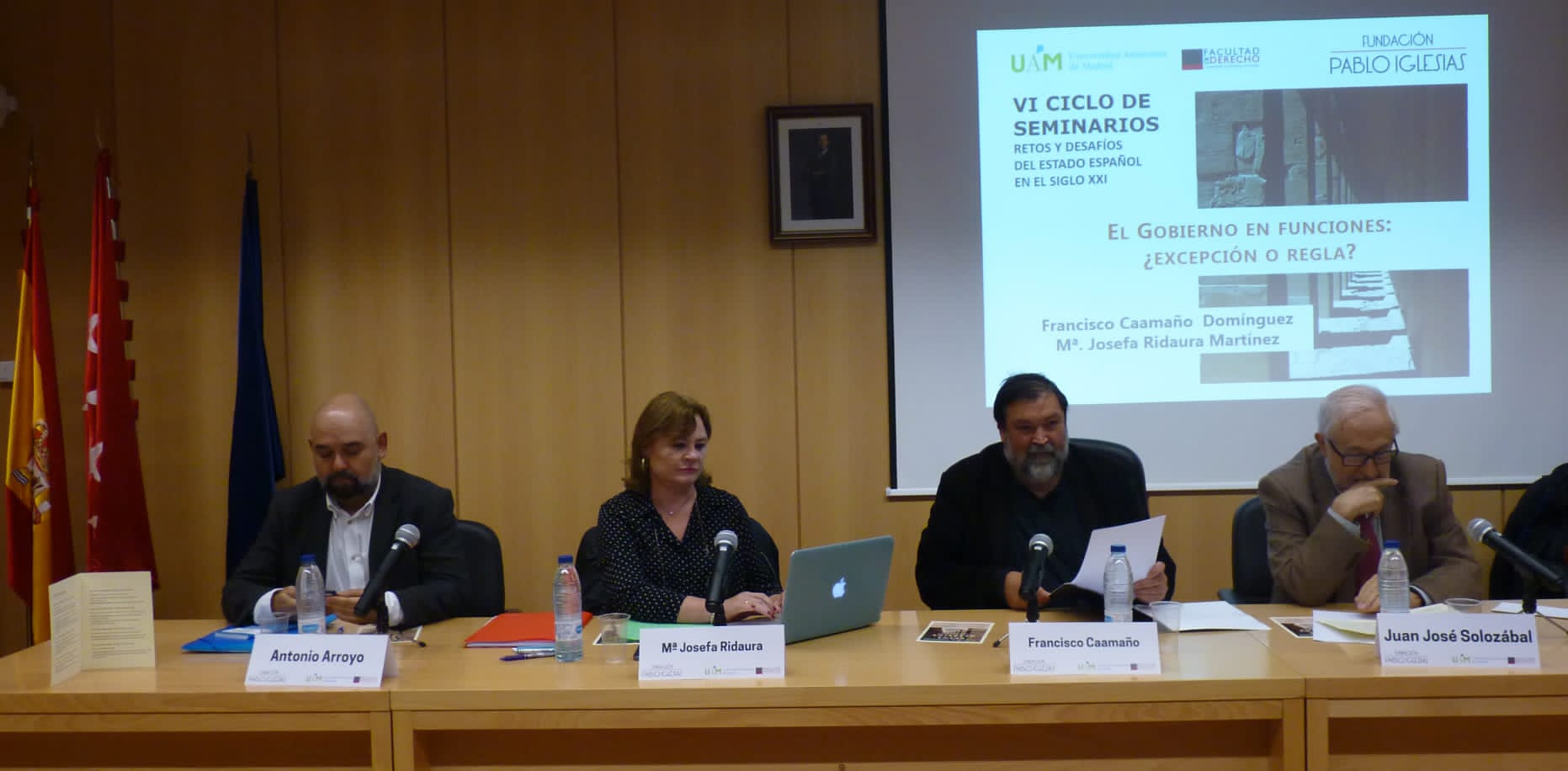 Francisco Caamaño, Catedrático de Derecho Constitucional de la Universidad de A Coruña y M. Josefa Ridaura, Catedrática de Derecho Constitucional de la Universidad de Valencia, abordan el tema El Gobierno en funciones en la sesión del mes de noviembre del Seminario Retos y desafíos del estado español en el siglo XXI.