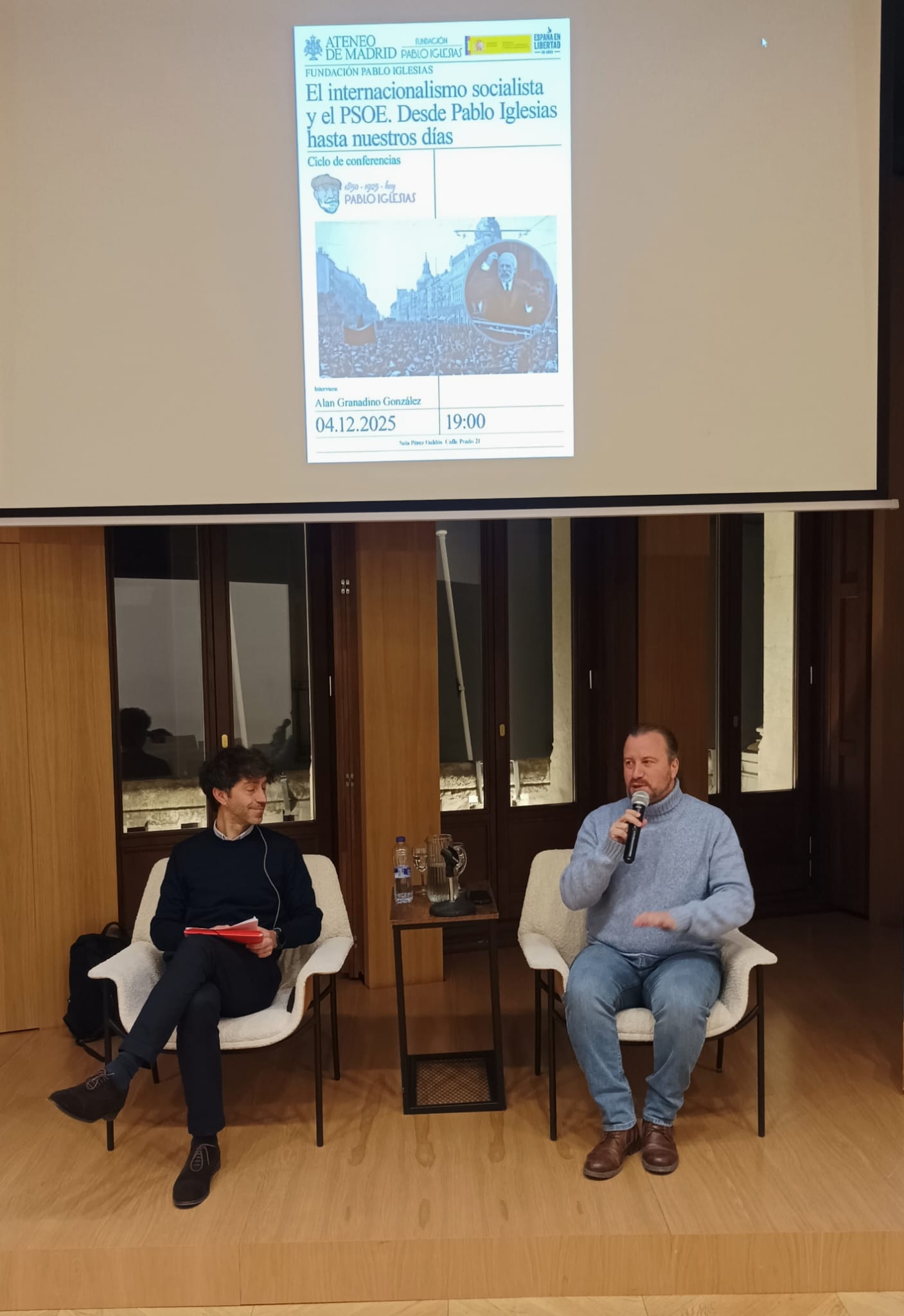 El jueves, 4 de diciembre, a las 19 h, continuaremos en el Ateneo de Madrid el ciclo de conferencias «Pablo Iglesias 1850–1925–hoy», con la titulada, El internacionalismo socialista y el PSOE. Desde Pablo Iglesias hasta nuestros días, impartida por Alan Granadino González. Doctor en Historia y Civilización. Universidad Complutense de Madrid