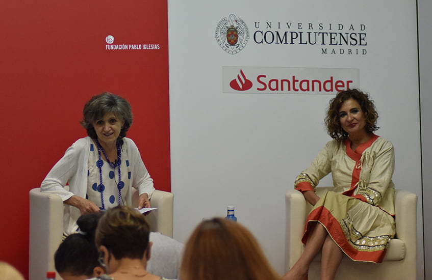 - Miguel Ángel Casermeiro, director de los Cursos de Verano de la UCM, Luisa Carcedo Roces, presidenta de la Fundación Pablo Iglesias, y María Jesús Montero, ministra de Hacienda y Función Pública