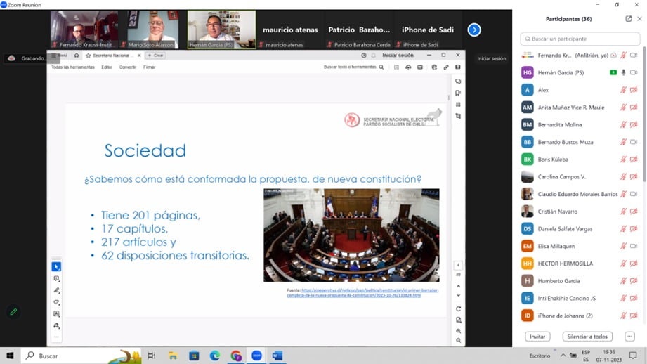 Con la intervención de Javier Izquierdo, Secretario de Estrategia y Acción Electoral de la CEF del PSOE. Senador por Valladolid y patrono de la Fundación Pablo Iglesias y Hernán García. Secretario Nacional Electoral del Partido Socialista de Chile.