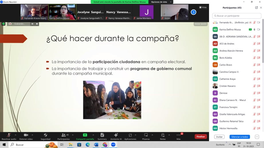 Este martes 31 de octubre, ha tenido lugar la segunda sesión de la Escuela Municipal Socialista 2023, titulada Programa y participación, que hemos organizado con el Instituto Igualdad y el Partido Socialista de Chile contando con la financiación del Ministerio de Asuntos Exteriores, Unión Europea y Cooperación.