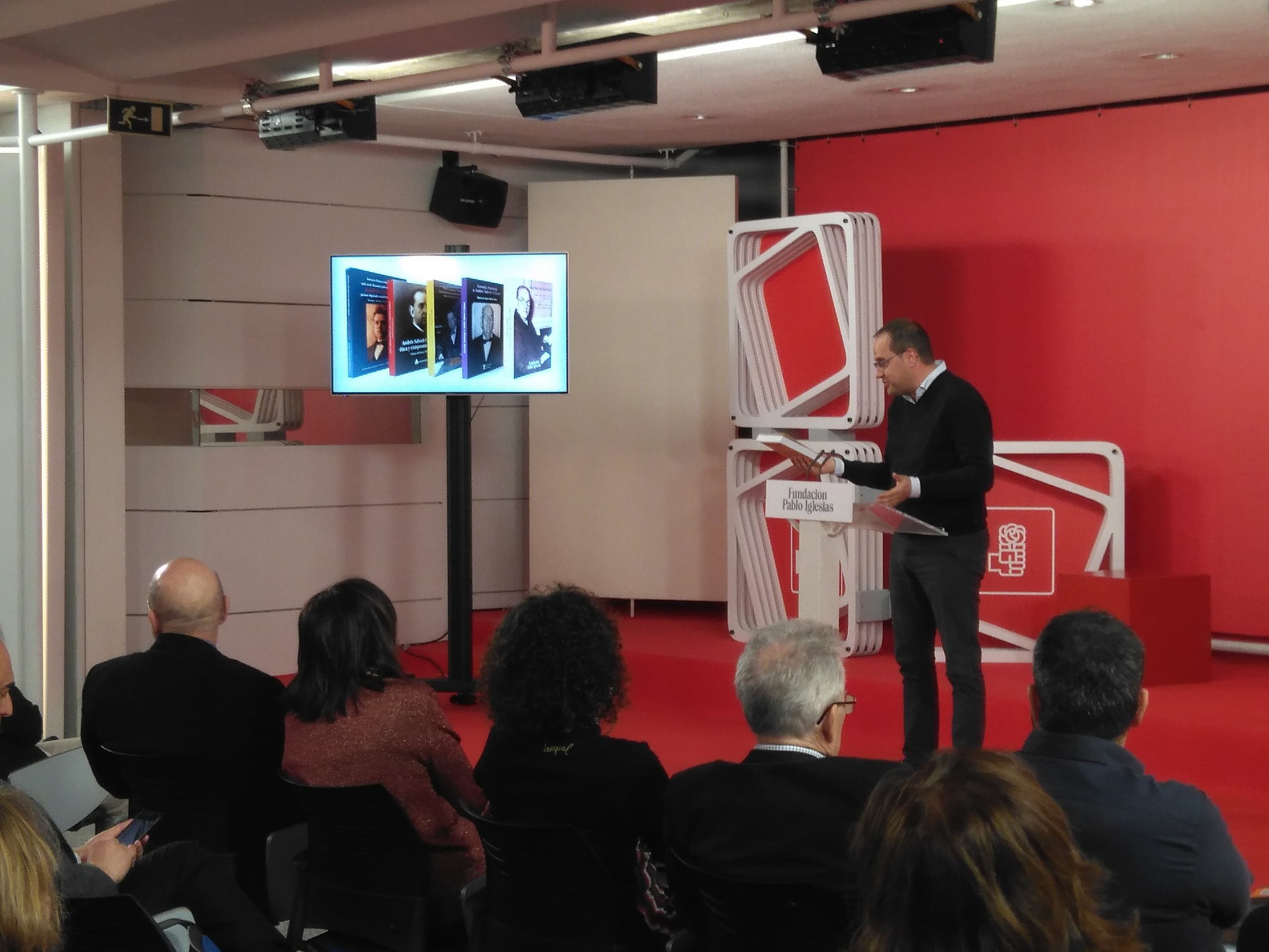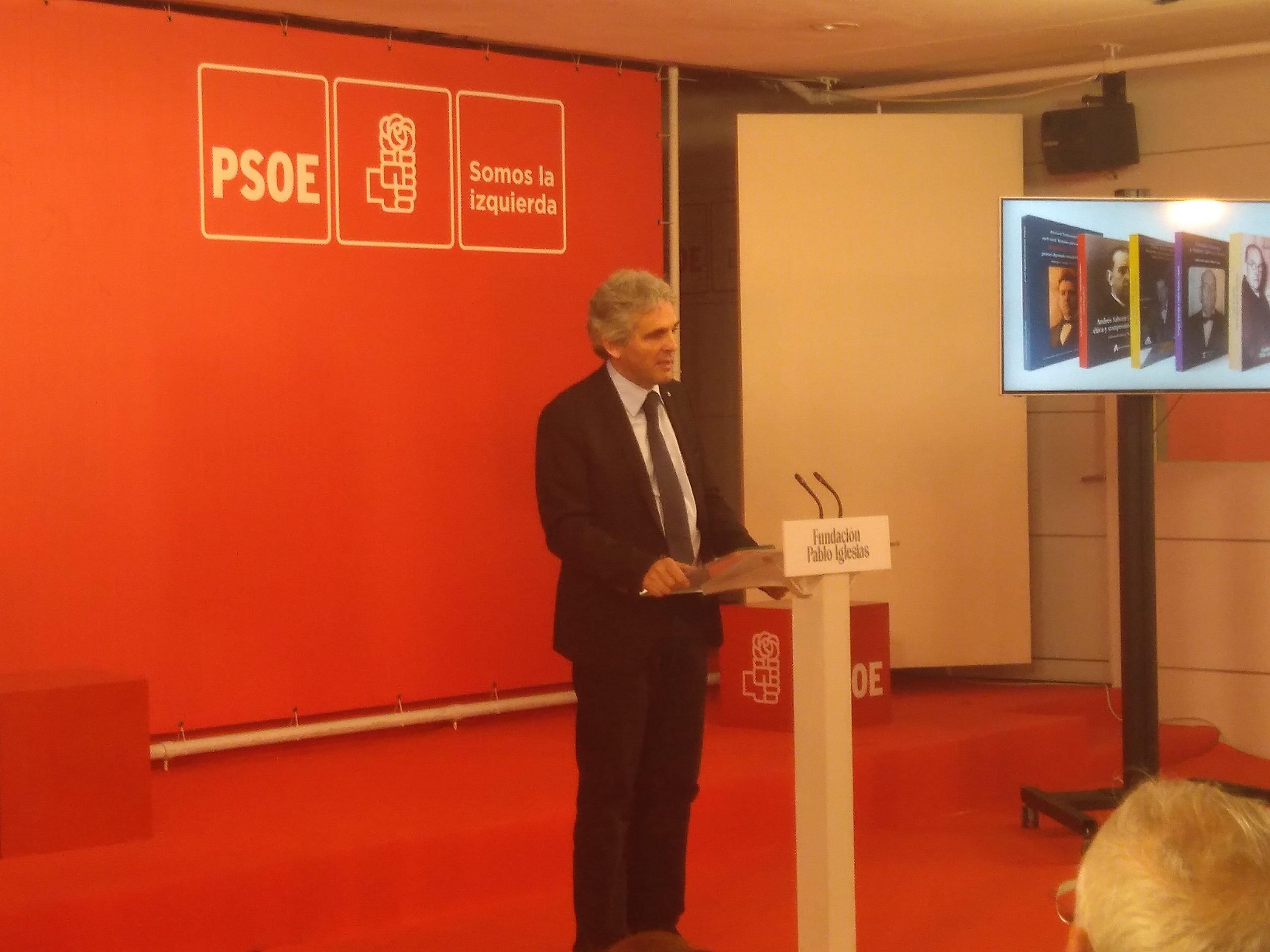 José Félix Tezanos, Presidente de la Fundación Pablo Iglesias, presenta el acto de Homenaje a Andrés Saborit. Participan Sebastián Pacheco, Presidente de la Fundación Largo Caballero, César Luena, coeditor de Cartas de Ginebra y Rafael Saborit, nieto de Andrés Saborit.