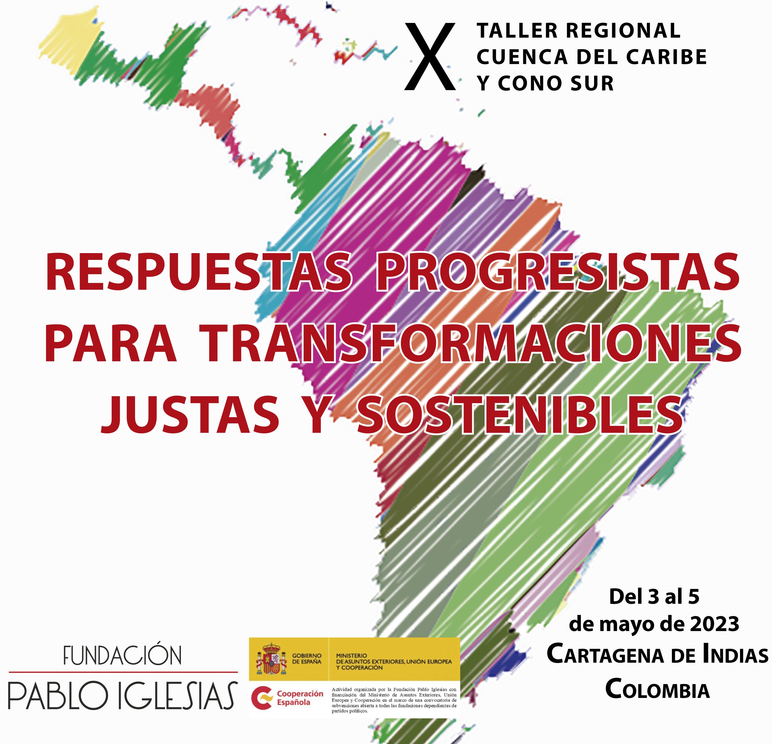La X edición del taller del Cono Sur y Cuenca del Caribe, organizado por la Fundación Pablo Iglesias, se celebrará los días 3, 4 y 5 de mayo en Cartagena de Indias (Colombia), bajo el título “Respuestas progresistas para transformaciones justas y sostenibles en América Latina y el Caribe” en línea con los recientes debates que se han mantenido tanto en la XXVIII Cumbre Iberoamericana como en el 1er Foro de Gobiernos Progresistas organizado por el presidente de la Internacional Socialista Pedro Sánchez.