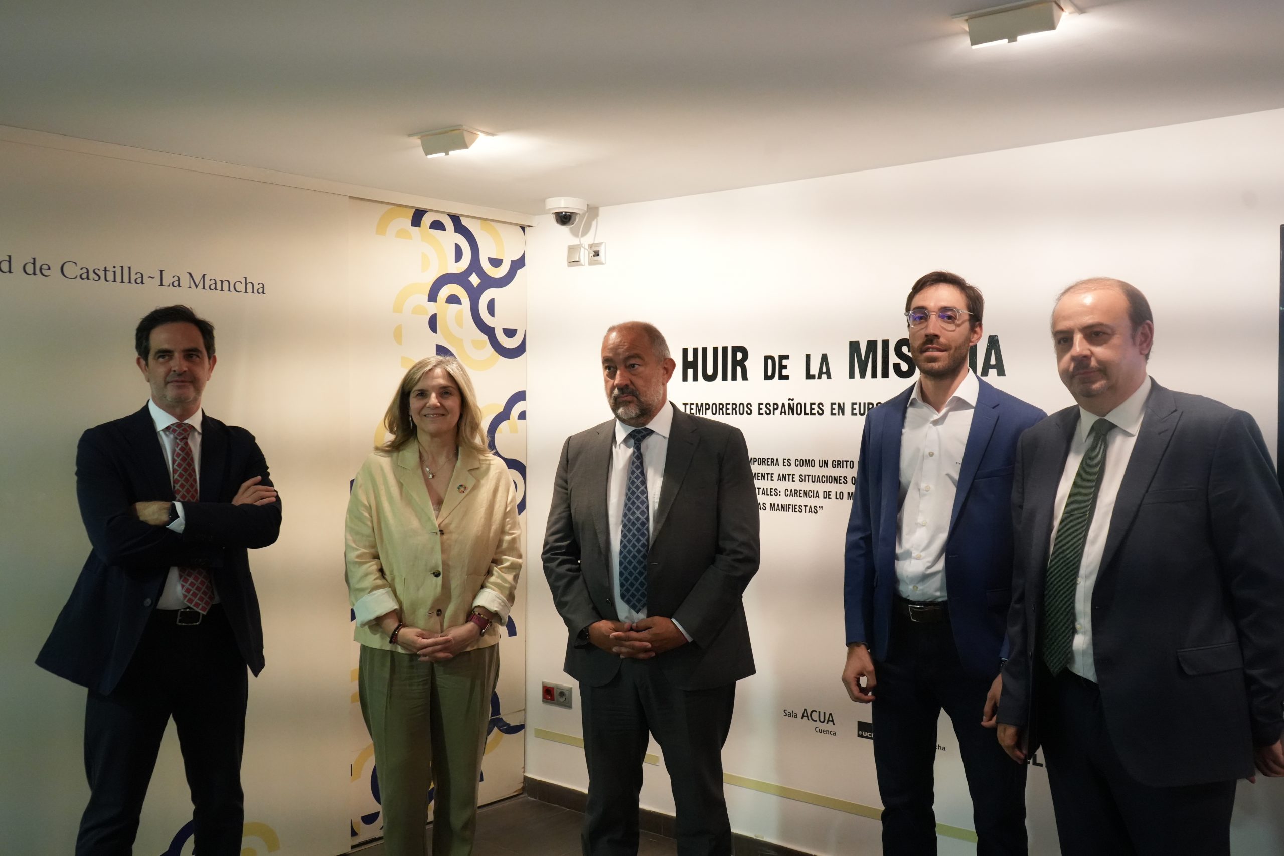 - Óscar Martín del Barrio, responsable de Actividades Culturales de la FPI, César Sánchez Meléndez, vicerrector de cultura, deporte y responsabilidad social de la UCLM, Pilar Cancela, secretaria de Estado, José Julián Garde López-Brea, rector UCLM, Sergio Molina, profesor UCLM y Comisario, Javier Vicario. viceconsejero de Relaciones Institucionales de la Junta de Castilla La Mancha.