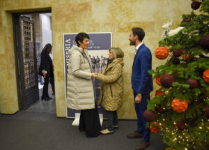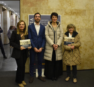 - Elena Bernardo, Directora General de Españoles en el Exterior y Políticas de Retorno, Sergio Molina, comisario de la exposición, Elma Saiz, ministra de Inclusión, Seguridad Social y Migraciones y Luisa Carcedo, presidenta de la Fundación Pablo Iglesias