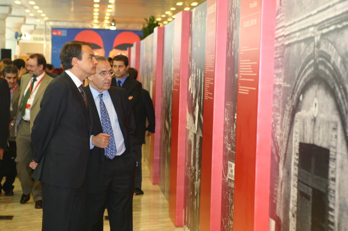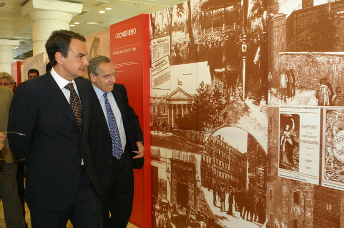 Inauguraron la muestra el Secretario General del PSOE y Presidente del Gobierno, Jose Luis Rodriguez Zapatero, y el presidente de la Fundación Pablo Iglesias, Alfonso Guerra.
