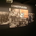 La exposición estuvo estructurada en diferentes ámbitos cronológicos: Antecedentes y transición, Constitución Española, consolidación democrática,  y el papel que los gobiernos socialistas tuvieron en la vertebración de España, las políticas sociales, el papel del ejército, el desarrollo de infraestructuras, la nueva situación de España en el mundo, el impulso económico, el desarrollo europeo y la consolidación democrática.