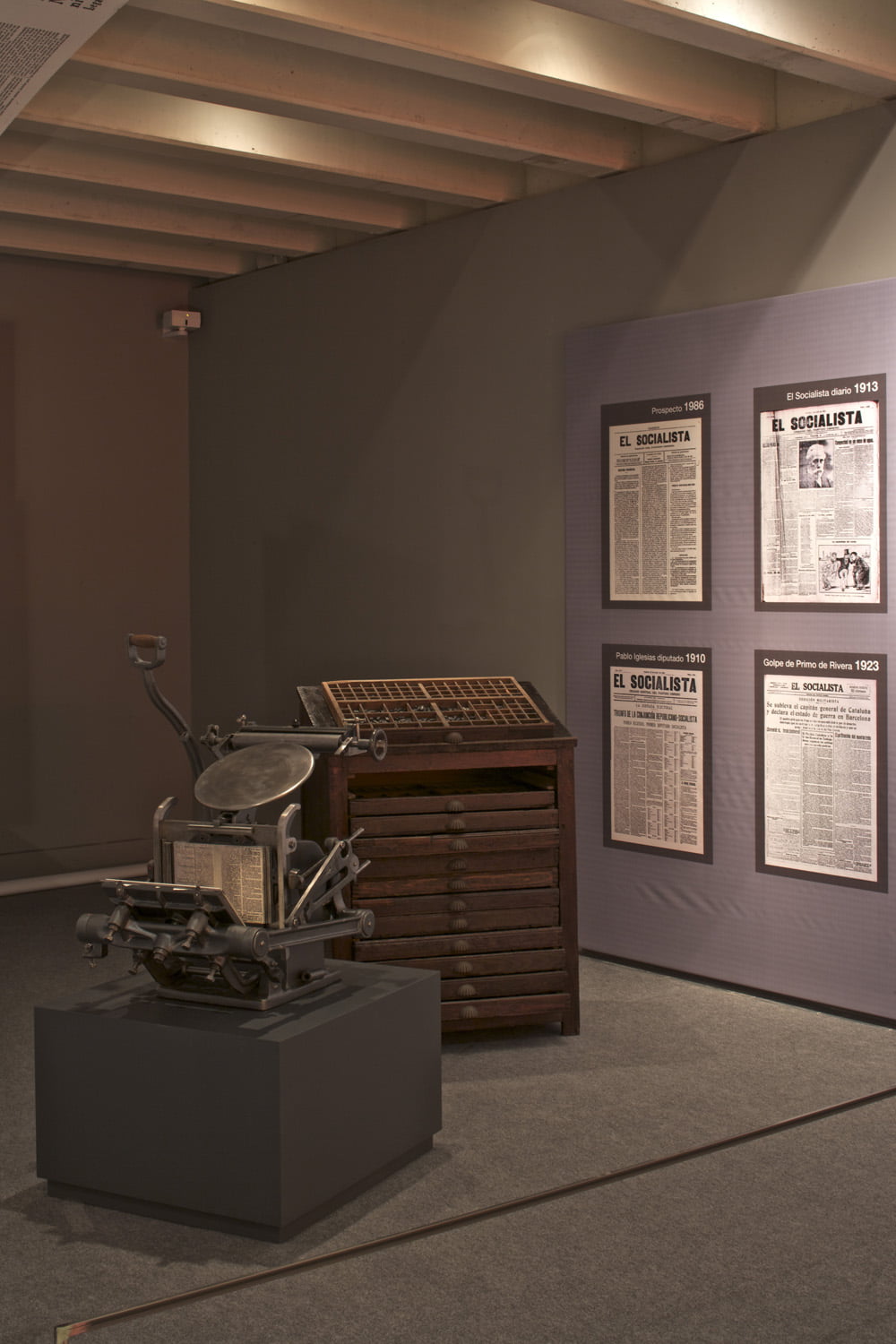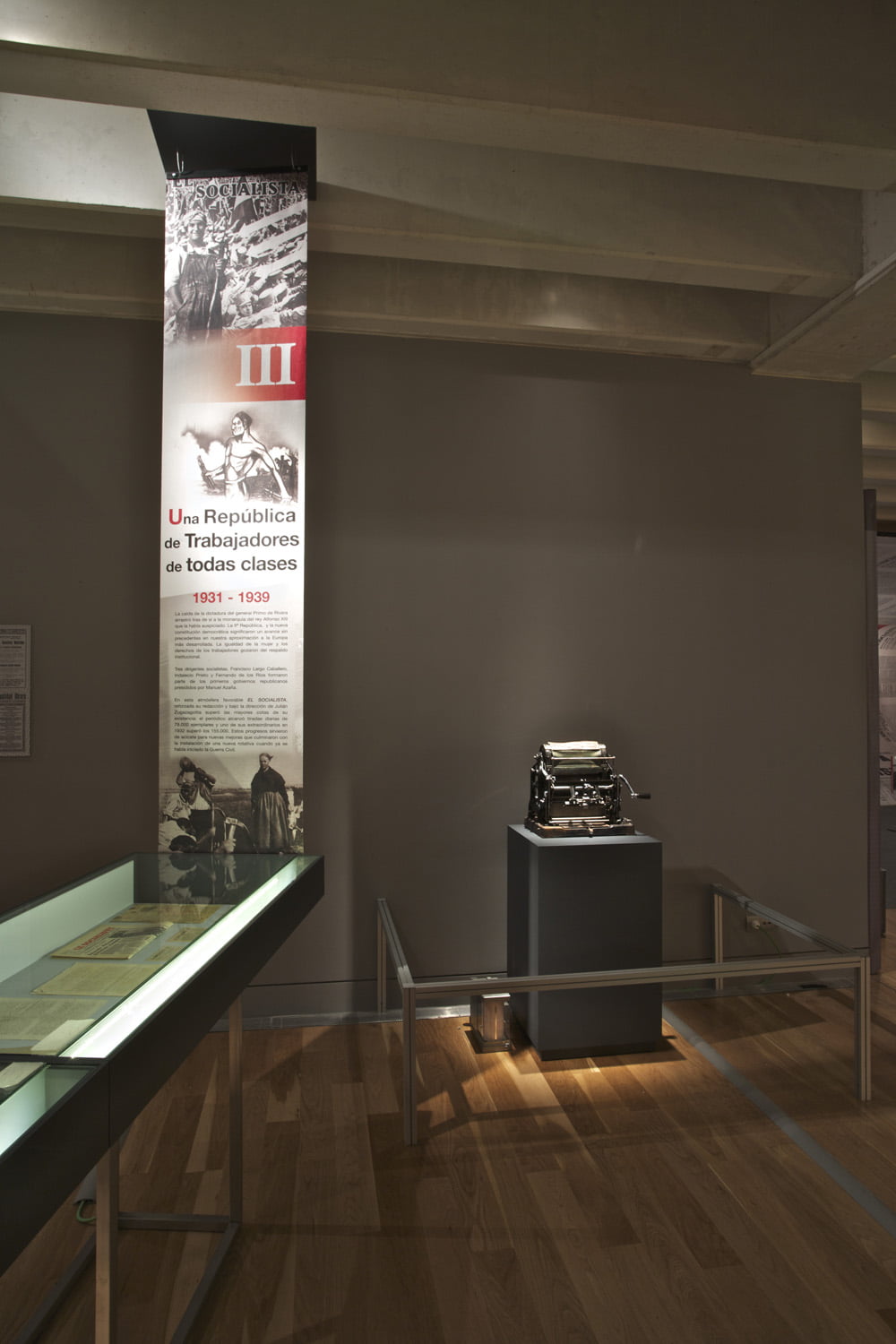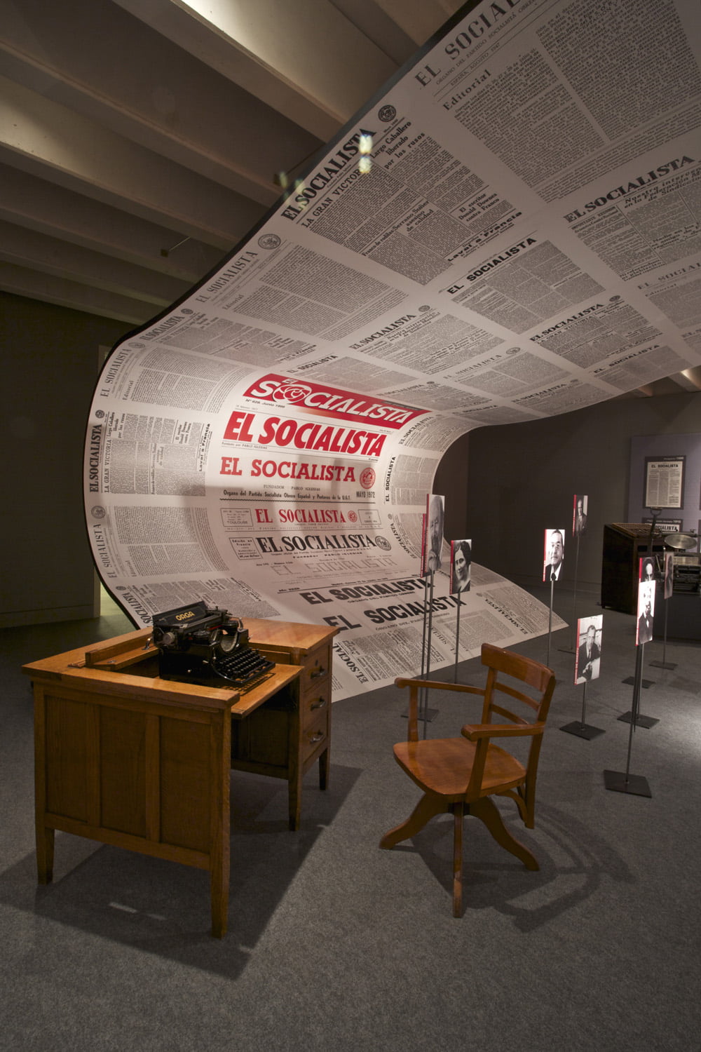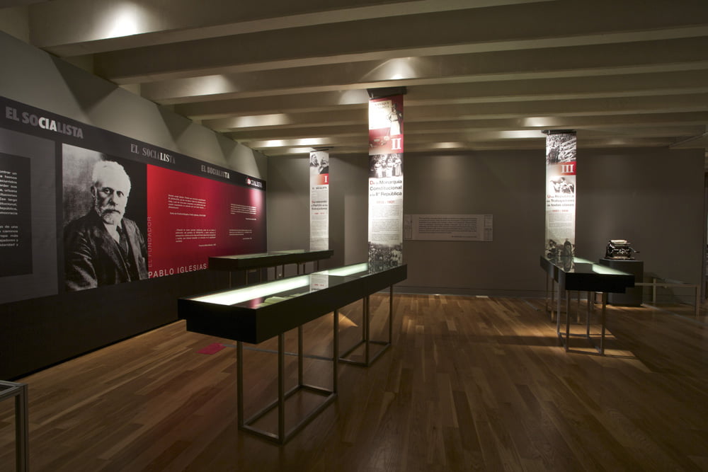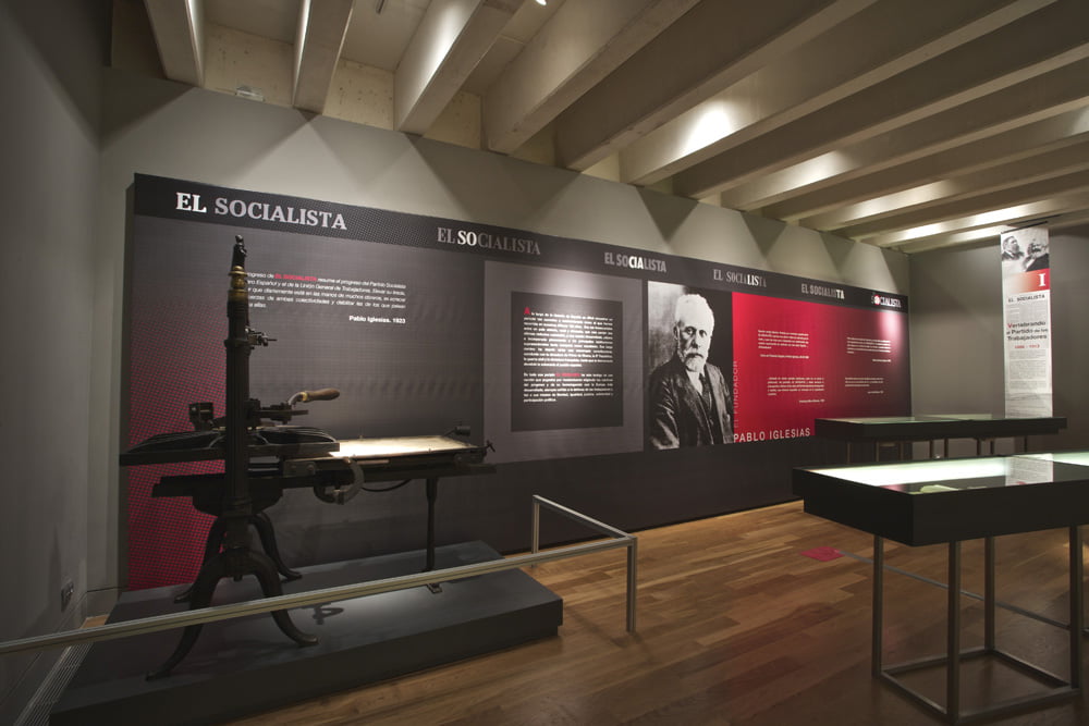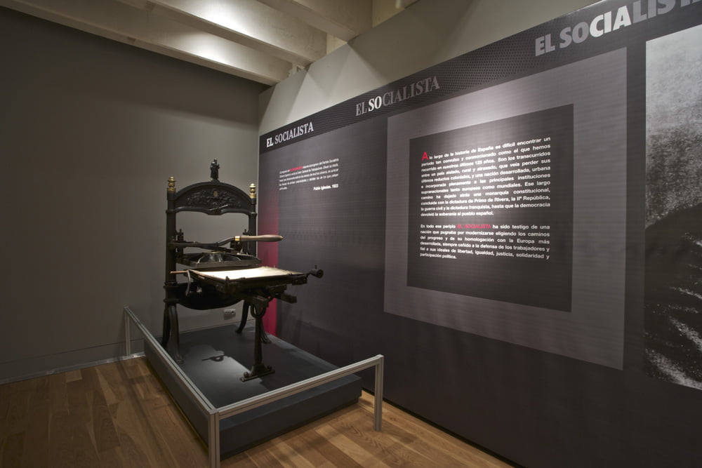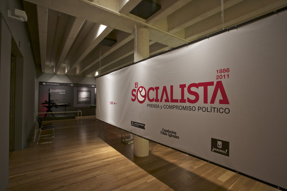 La Fundación Pablo Iglesias organiza esta exposición con el fin de conmemorar los 125 años de existencia de este periódico, órgano del PSOE a lo largo de su existencia.