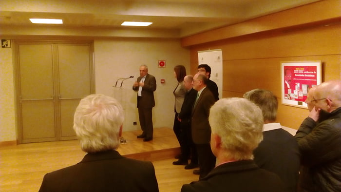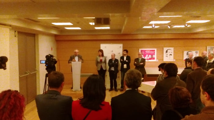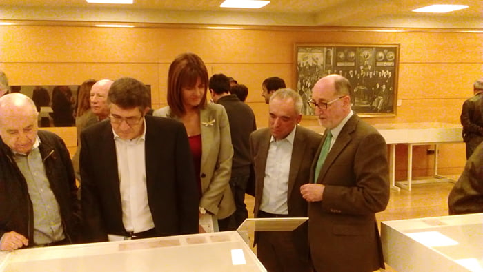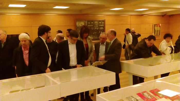 Rafael Simancas, Patrono de la Fundación Pablo Iglesias junto a Idoia Mendía, Secretaria General de Partido Socialista de Euskadi, Chus Greciet, Presidente de la Fundación Tomás Meabe, Raúl Arza, Presidente de la Fundación Juan de los Toyos  y Enrique Moral Sandoval, Comisario de la muestra inauguraron en el Palacio Euskalduna la exposición Tomas Meabe 1879-1915. Fundador de las Juventudes Socialistas.