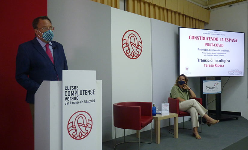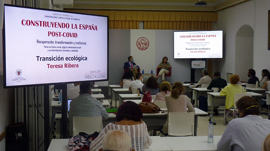 Teresa Ribera, vicepresidenta tercera del Gobierno y ministra para la Transición Ecológica y el Reto Demográfico, en el curso de verano CONSTRUYENDO LA ESPAÑA POST-COVID