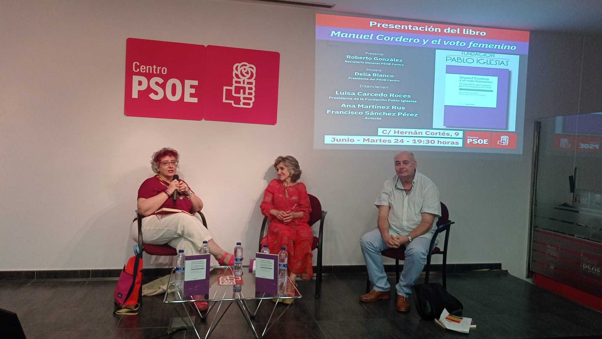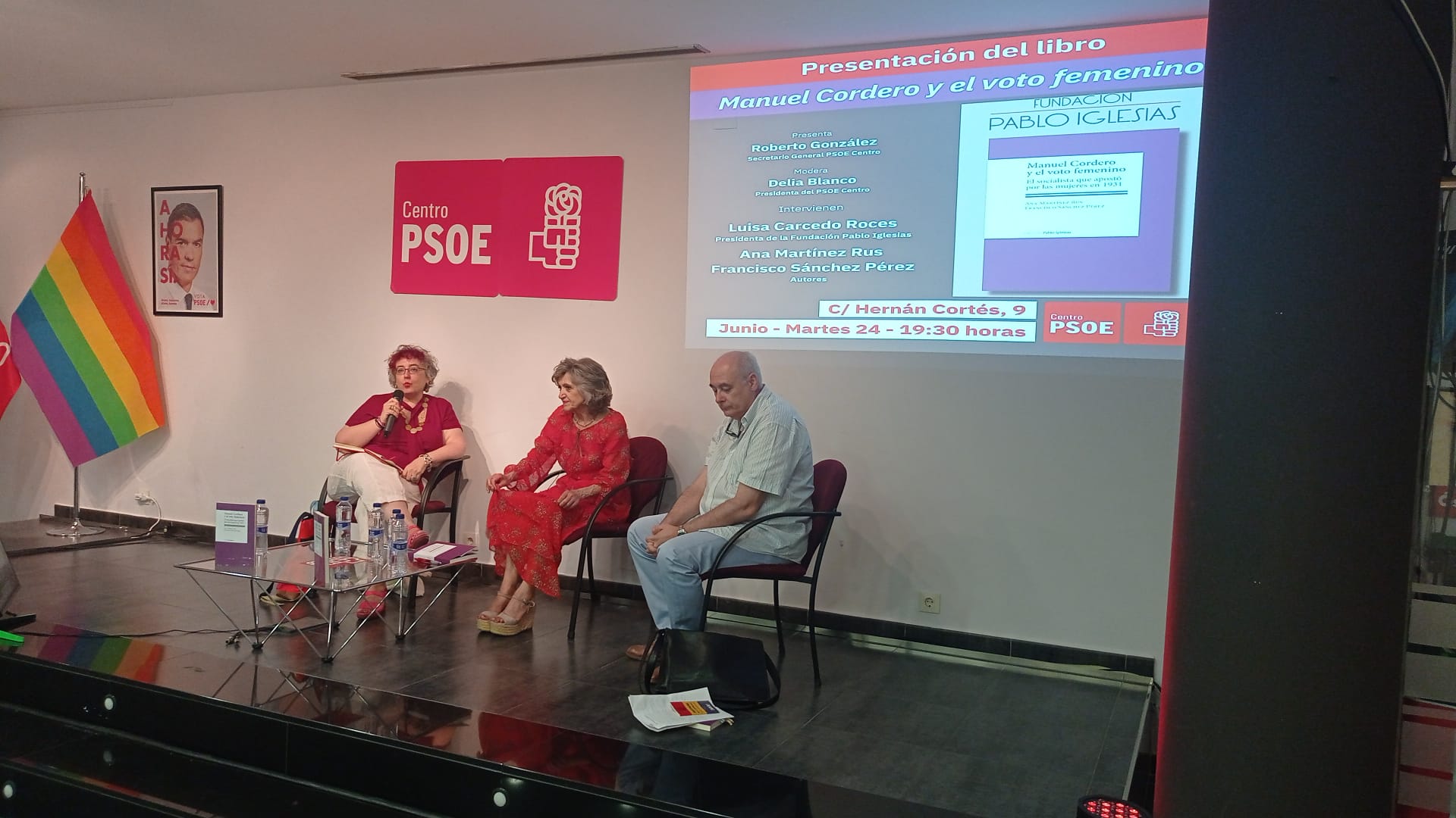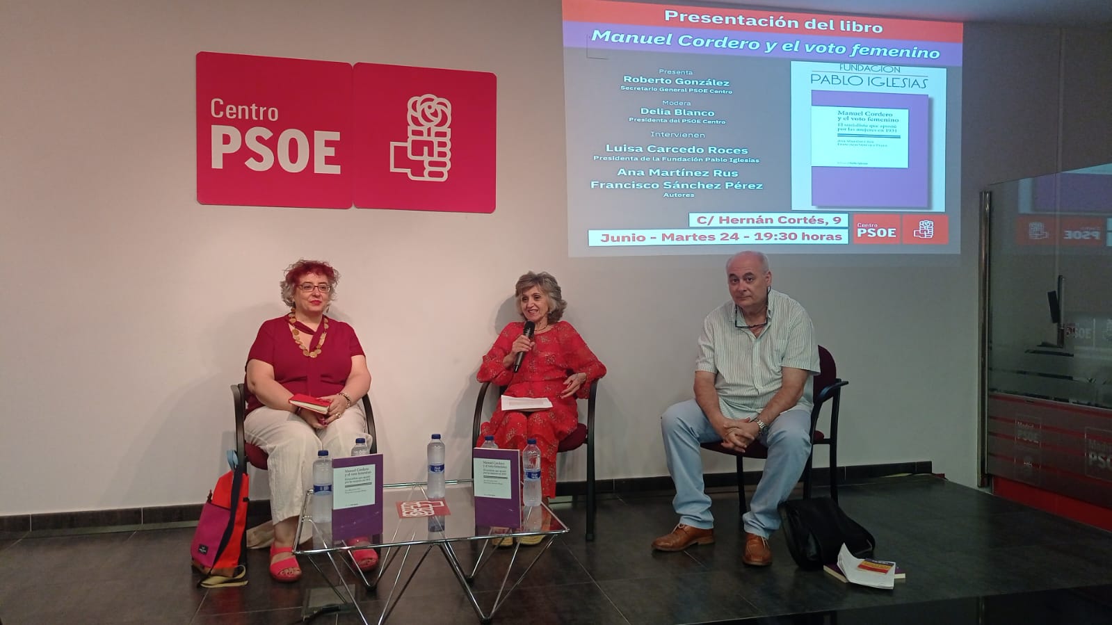 El martes, 24 de junio de 2025, a las 19:30 h, presentaremos el libro Manuel Cordero y el voto femenino. El socialista que apostó por las mujeres en 1931 en la Agrupación Socialista de Madrid-Centro. Calle Hernán Cortés, 9 (Madrid). En el acto participarán: