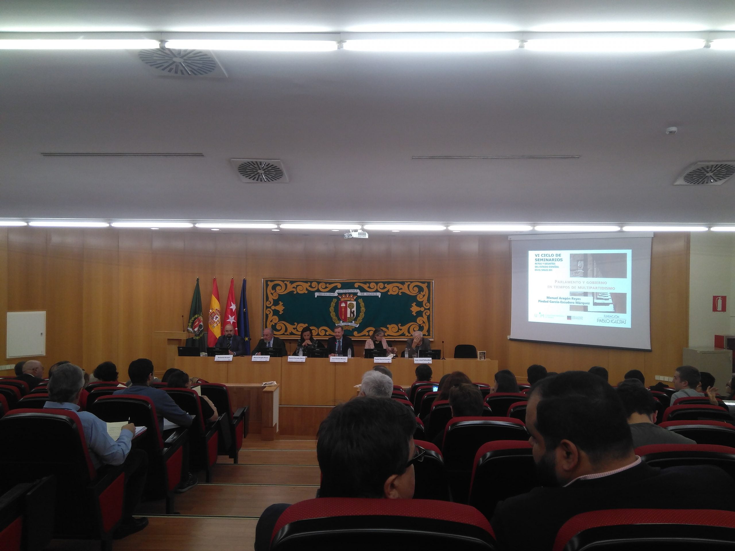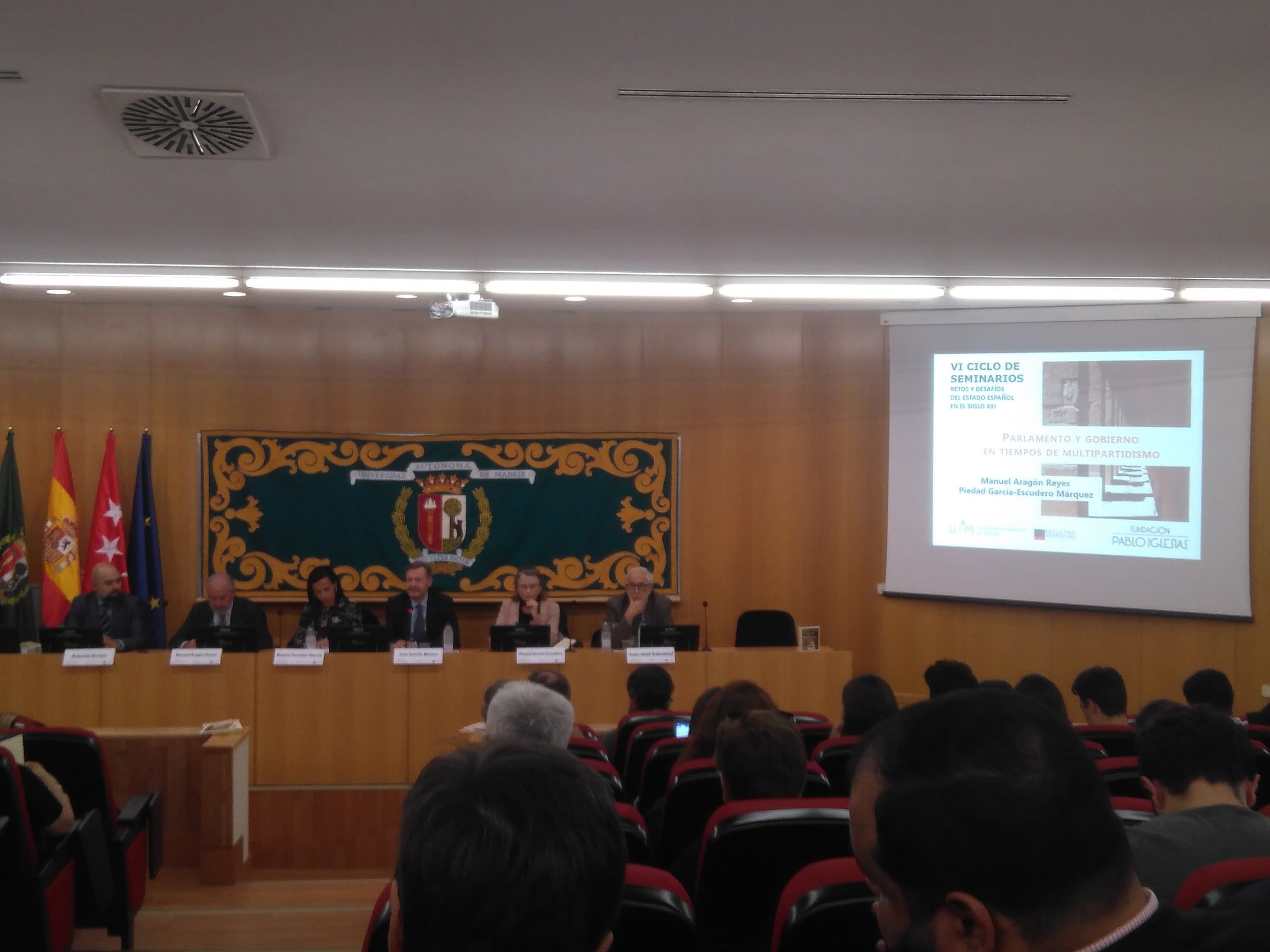 A continuación, Manuel Aragón Reyes, Catedrático de Derecho Constitucional de la Universidad Autónoma de Madrid y Exmagistrado del Tribunal Constitucional y Piedad García-Escudero Márquez, Catedrática de Derecho Constitucional de la Universidad Complutense de Madrid. Exsecretaria general del Congreso de los Diputados debatirán sobre el tema PARLAMENTO Y GOBIERNO EN TIEMPOS DE MULTIPARTIDISMO.