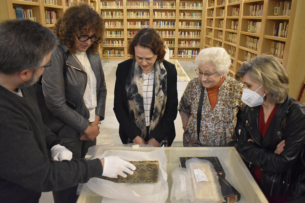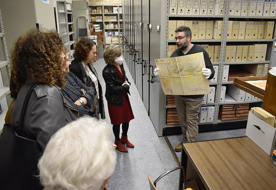 Magdalena Valerio, miembro de nuestro Consejo Asesor, acompañada por nuestra presidenta, Luisa Carcedo, visita el Archivo y Biblioteca de la Fundación Pablo Iglesias. Rodrigo Lucía, director del Archivo, le ha mostrado una pequeña parte de los fondos documentales, bibliográficos y hemerográficos. Nos acompaña en la visita Rosa Gorges, directora de la Fundación Anastasio de Gracia y Lucía Marín, hija del fotógrafo Luis Ramón Marín, cuyos fondos fotográficos están depositados en nuestro Archivo.