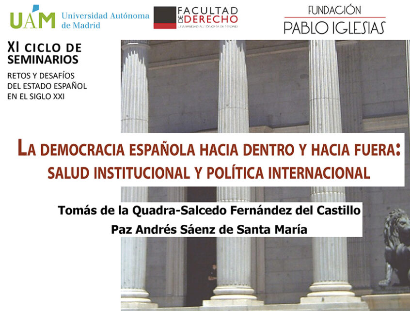 Evento relacionado: XI edición del ciclo de seminarios «Retos y desafíos del Estado español en el siglo XXI». La democracia española hacia dentro y hacia fuera: salud institucional y política internacional